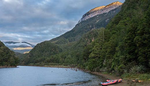 Whether you decide to take the scenic helicopter flight to the river or experience a more gradual change in landscape hiking through the wilderness, the moment your paddle first dips into the waters of the Karamea you’ll become part of a team that will share many memorable experiences over the next 3 days. In the beginning the Karamea is a small river, with long boulder garden type rapids up to Class 4 and a series of tranquil earthquake lakes caused by rock-falls in the great earthquake of 1929. Spectacular vistas unfold around every corner on our way down to the confluence of the Beautiful and Roaring Lion rivers and our campsite at the infamous ‘Roaring Lion‘ rapid.